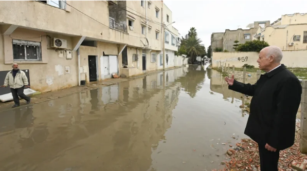 تحوّل رئيس الجمهورية قيس سعيّد، ظهر يوم أمس، إلى منطقة البحر الأزرق التابعة لمعتمدية المرسى من ولاية تونس، حيث ما تزال كميات من المياه متراكمة بعدد من الأنهج، على إثر التقلبات الجوية الأخيرة.